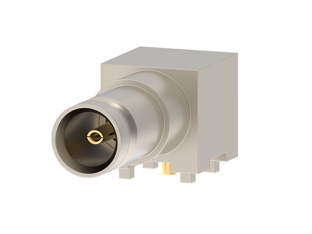 DIN 1.0/2.3 Jack, Right-Angle, PCB Mount, Gold (Au) Plated, 50 Ohms