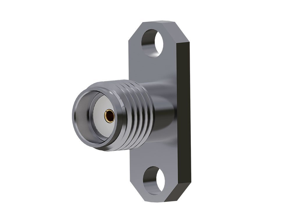 50 Ohms, SMA Jack, .625” x .223” Flange Mount, 2-Hole, Field Replaceable, Accepts .012″ Pin, EMI/RFI Ground Ring