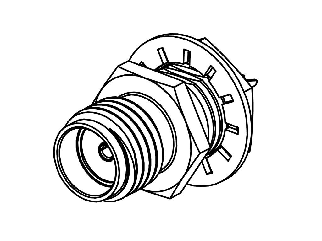 SMA Jack, Bulkhead Mount, Straight, Solder Pot, with Nut and Lockwasher, Stainless Steel, Tray, 50 Ohms