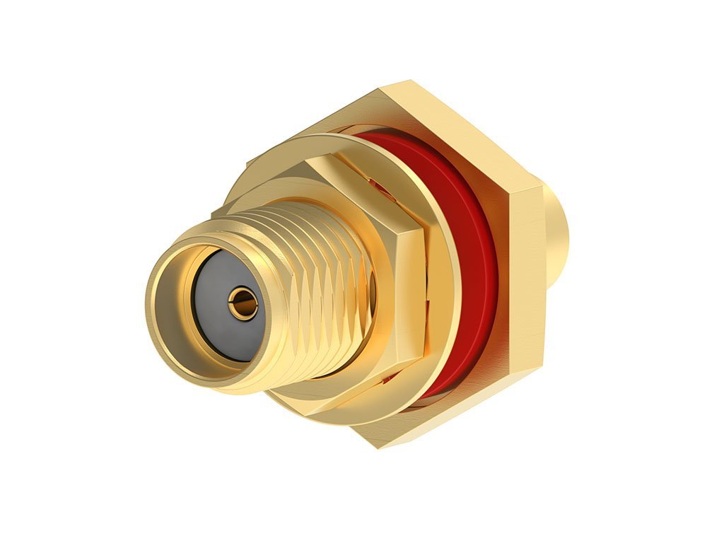 SMA Jack, Bulkhead Mount, Straight, RG-402 (.141″ Semi-Rigid) Cable, with Nut and Lockwasher, Brass, Individual Bag, 50 Ohms