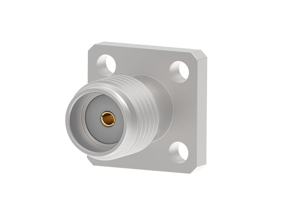 50 Ohms, SMA Jack, .375” x .375” Flange Mount, 4-Hole, Field Replaceable, Accepts .012″ Pin, EMI/RFI Ground Ring