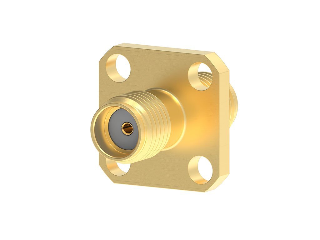 SMA Jack-to-SMA Jack Adapter, 4-Hole Flange Mount, Straight, Adapter, Stainless Steel, Individual Bag, 50 Ohms