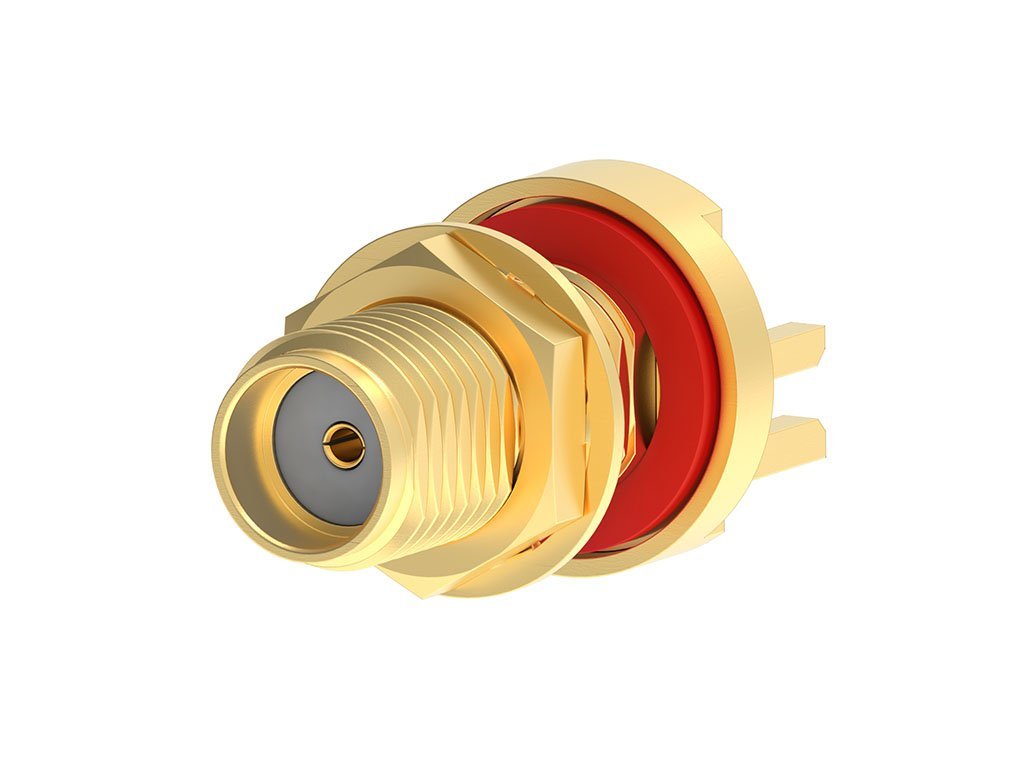 SMA Jack, Straight, Edge Mount, with Nut and Lockwasher, Brass, Individual Bag, 50 Ohms