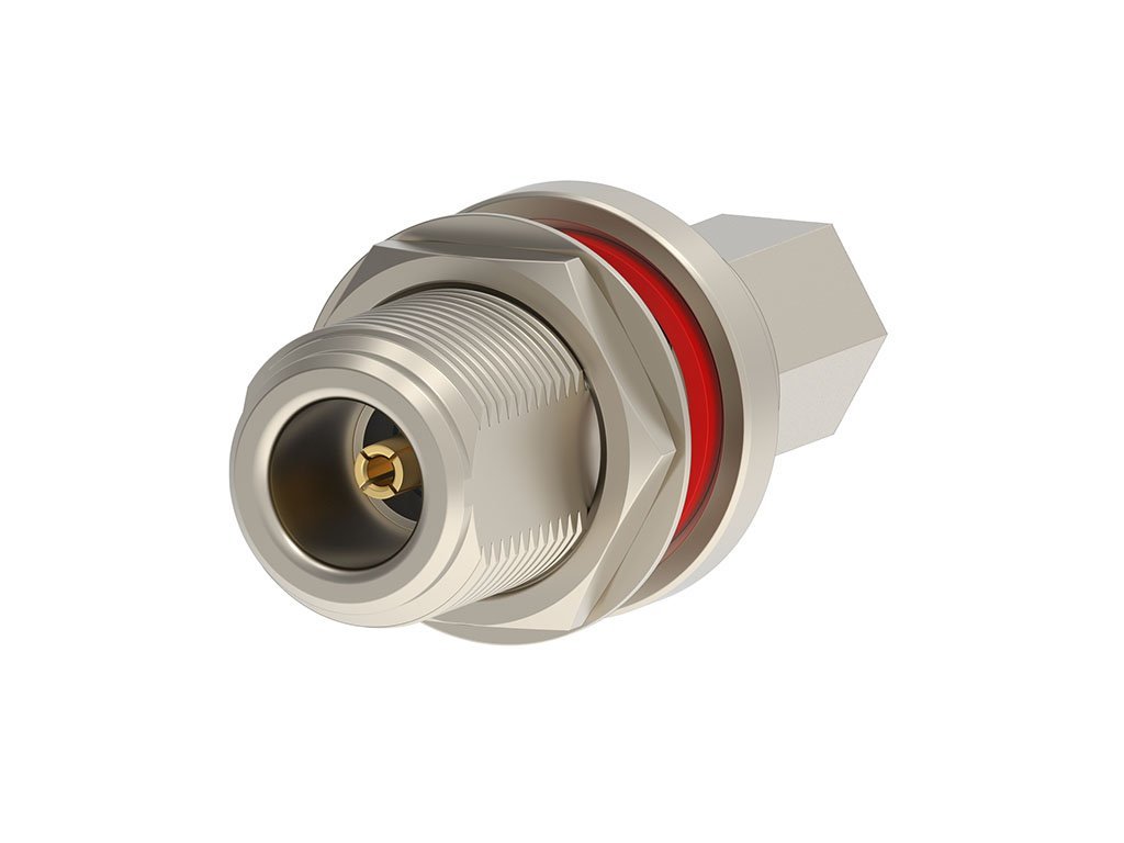 N Jack, Straight, Bulkhead, LMR-400 Cable, with Contact, Crimp Tube, with Jam Nut and Lock Washer, Spacer, Tray, 50 Ohms