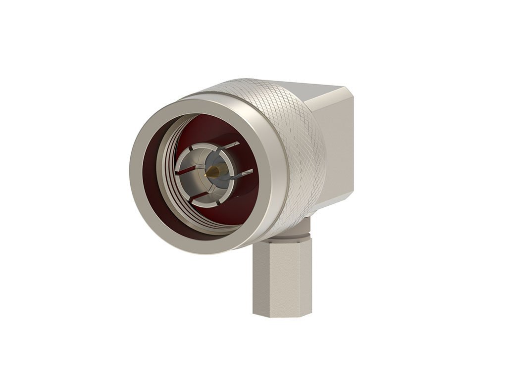 N Plug, Right-Angle, RG-59 Cable, with Crimp Tube, Cap, Tray, 50 Ohms