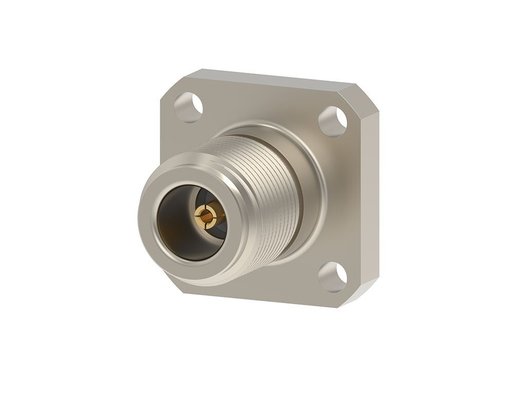 N Jack, Straight, 4-Hole Flange, Through Hole, Stainless Steel, Sealed, Tray, 50 Ohms