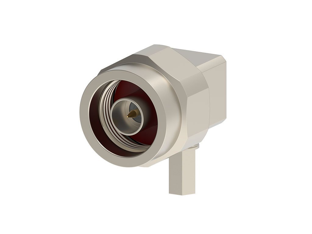 N Plug, Right-Angle, RG-58/LMR-195 Cable, with Crimp Tube, Spacer, Tray, 50 Ohms
