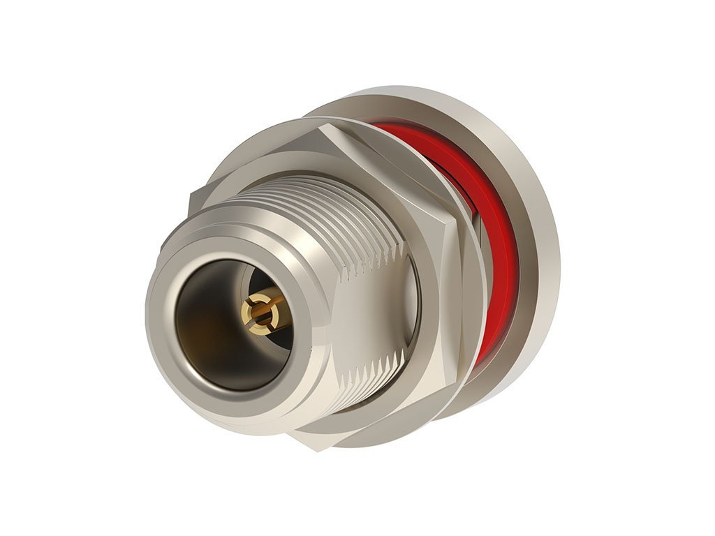 N Jack, Straight, Bulkhead, RD-316 Cable, with Contact, Crimp Tube, with Jam Nut and Lock Washer, Gasket, IP68, Tray, 50 Ohms