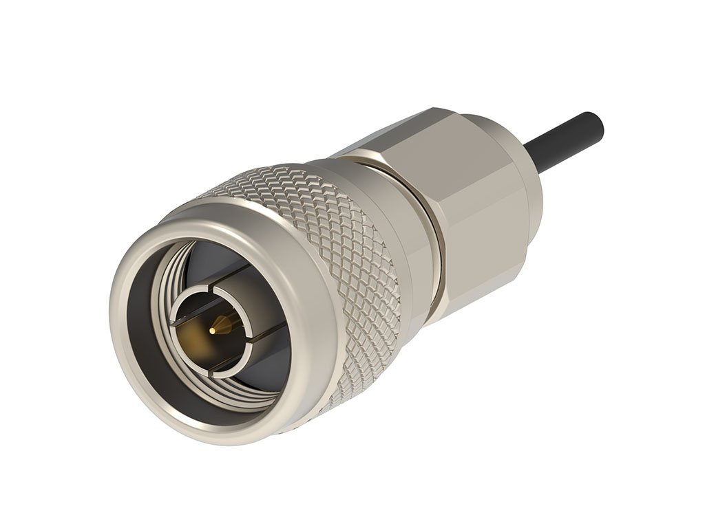 N Plug, Straight, RG-213/U Cable with Contact, Insulator, Two Bushings, Clamp Nut, Bag, 50 Ohms
