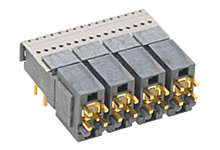75 Ohms, RF DIN 1.0/2.3 1-by-4, Right-Angle Male Header, Ganged