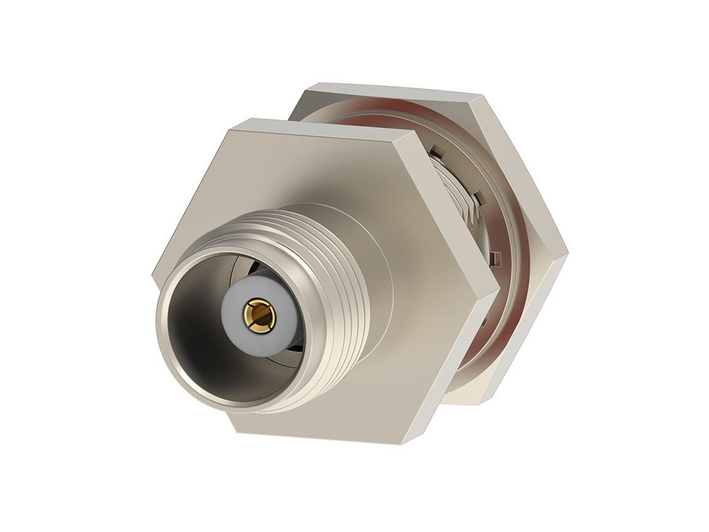 TNC Jack-to-SMA Jack Between-Series Adapter, Bulkhead, Straight, Nickel, Tray, 50 Ohms
