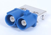 50 Ohms, Dual FAKRA SMB Jack, Right-Angle, Edge Launch, Keying Option Z, Water Blue