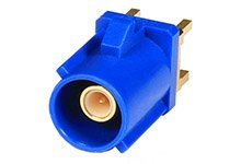50 Ohms, FAKRA SMB Jack, Vertical Through Hole, Keying Option B, Gold (Au) Plated Body, 16.80mm Height, Signal White