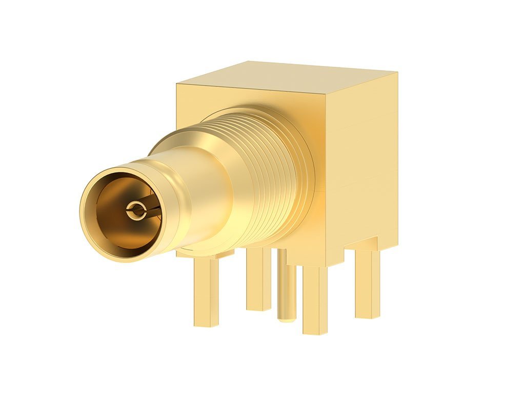 DIN 1.0/2.3 Jack, Right-Angle, Bulkhead, PCB Mount, Gold (Au) Plated, 50 Ohms