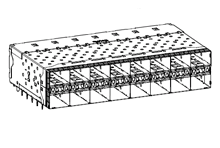 Small Form-factor Pluggable Plus (SFP+) Stacked 2-by-8 Multi-Port Connector with Inner Ports and Outer Lite Pipe Ports, with Improved EMI Metal Gasket, 320 Circuits, Tin (Sn) Tails