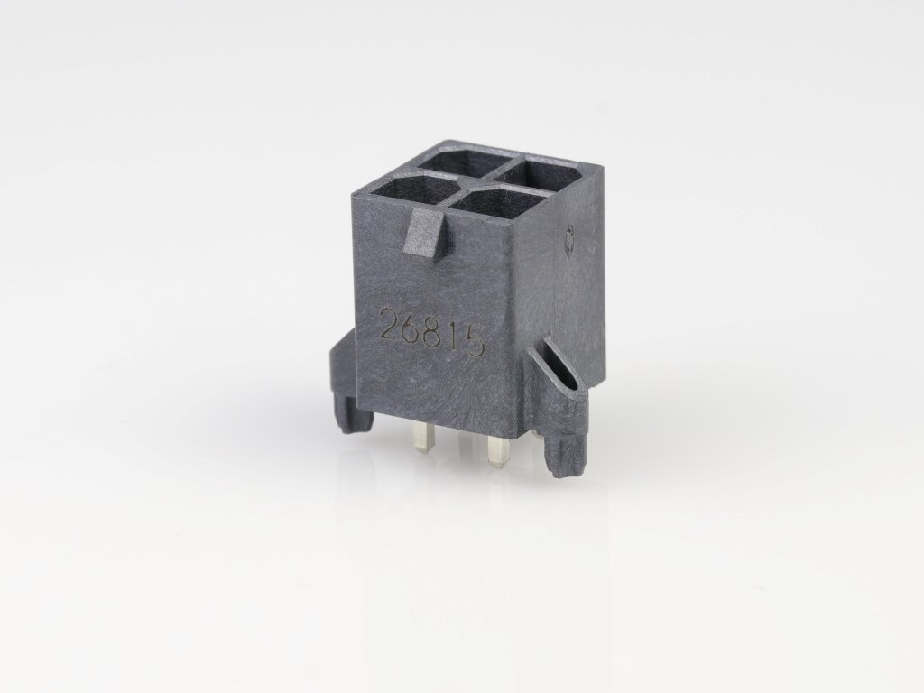 Mega-Fit Vertical Header, Through Hole, 5.70mm Pitch, Dual Row, 4 Circuits, 1.52µm Tin (Sn) Plating, Glow-Wire Capable, Black