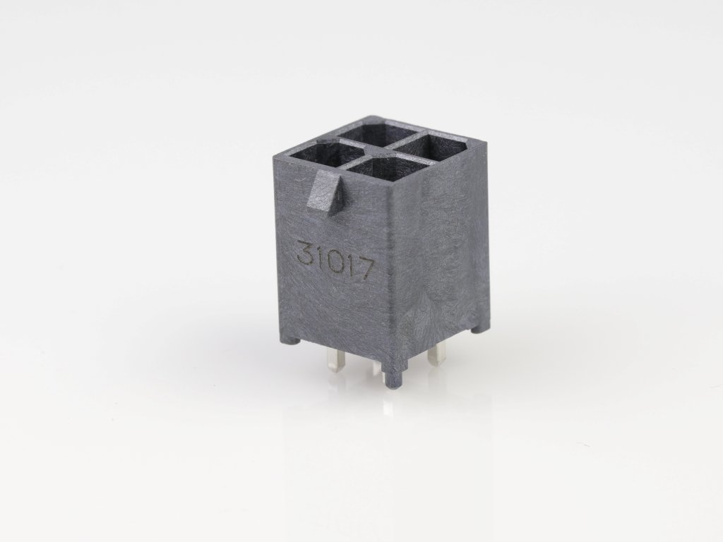 Mega-Fit Slim Vertical Header, Through Hole, 5.70mm Pitch, Dual Row, 4 Circuits, 1.52µm Tin (Sn) Plating, Glow-Wire Capable, Black