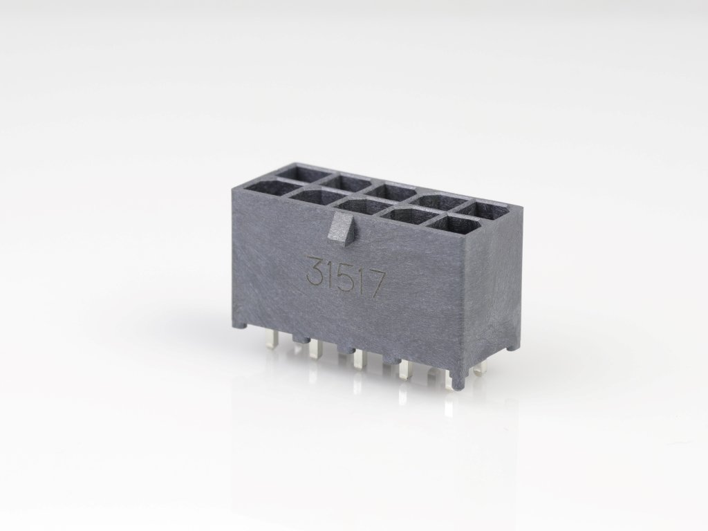Mega-Fit Slim Vertical Header, Through Hole, 5.70mm Pitch, Dual Row, 10 Circuits, 1.52µm Tin (Sn) Plating, Glow-Wire Capable, Black