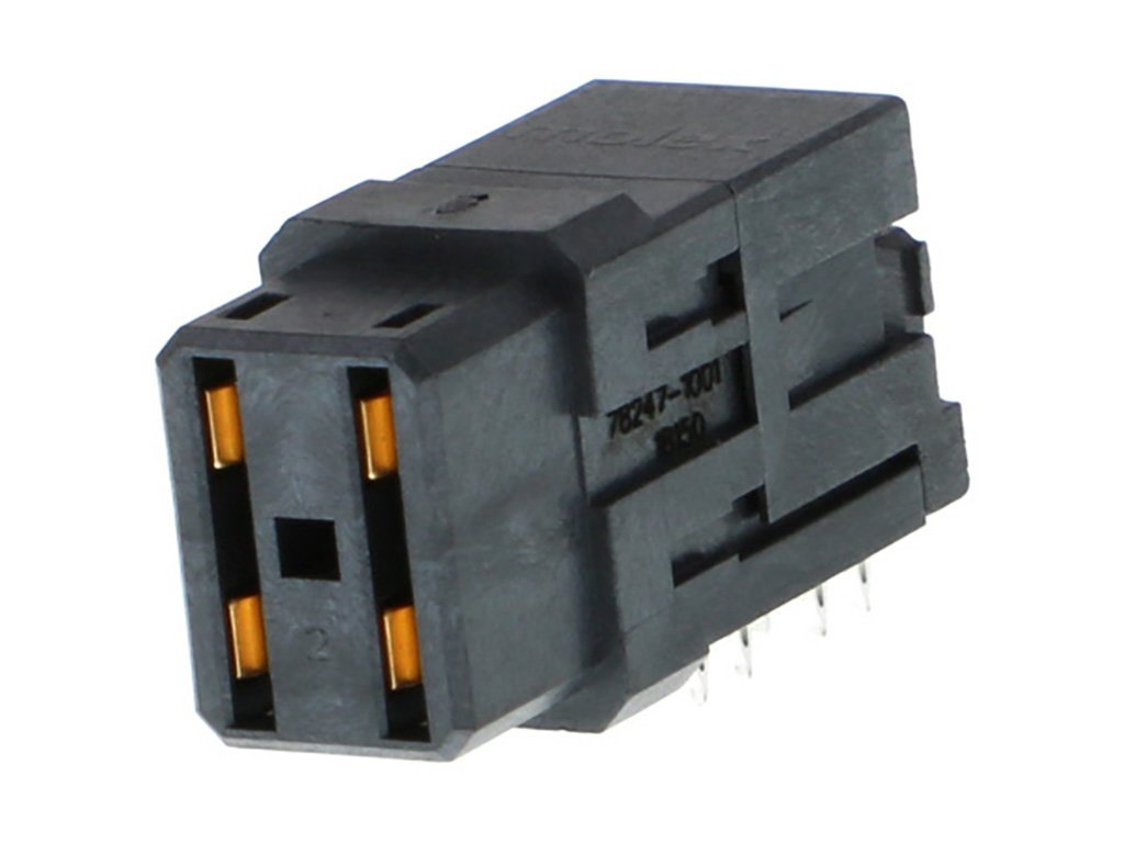 Impact 3 Pair, Right-Angle Power Receptacle, Press-Fit, LCP, Glass Filled UL94-V0, Black, Tray Packaging, Lead-Free