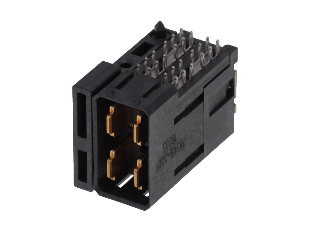 Impact 4 Pair, Right-Angle Power Header, Right Hold-Down, Module 1: Blade P1 & P2, Length 6.90mm; Press-Fit, LCP, Glass Filled UL94-V0, Black, Tray Packaging, Lead-Free