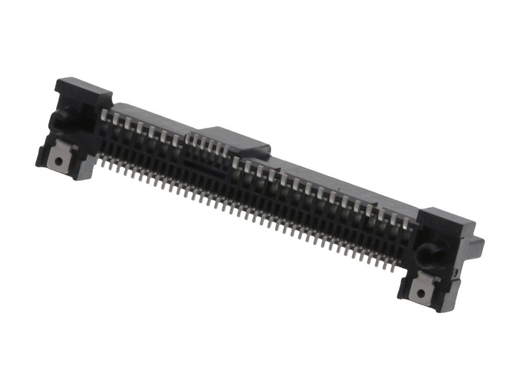 1.27mm Signal Pitch, 0.80mm Signal Pitch, 1.27mm Power Pitch SAS-3/PCIe-3 Receptacle, Vertical, Surface Mount, with Front Solder Tab, 8.15mm Height, 2.00mm Peg Length, 2.36mm Peg Diameter, 1.60mm PCB Thickness, 68 Circuits, with Cap, Embossed Tape and Reel, Lead-Free