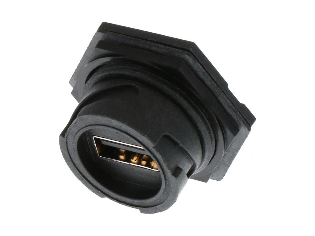 Sealed Industrial USB 2.0 Type A Panel Mount PCB Receptacle