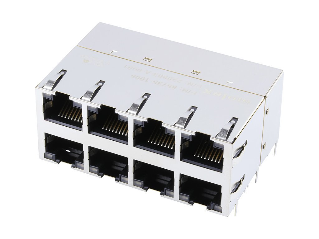 Gigabit Magnetic Jack, Enabled PoE+ 2×4, with LEDs Left/Green and Right/Yellow