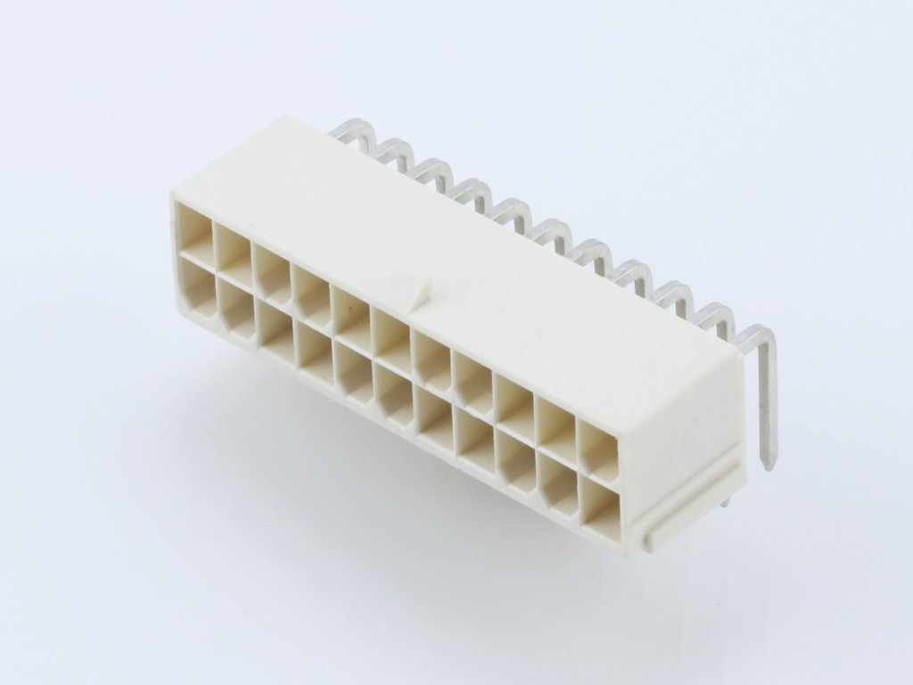 Mini-Fit Jr. Header, 4.20mm Pitch, Right-Angle, Nylon, without Flange,22 Circuits, Tin (Sn) over Nickel (Ni) Plating