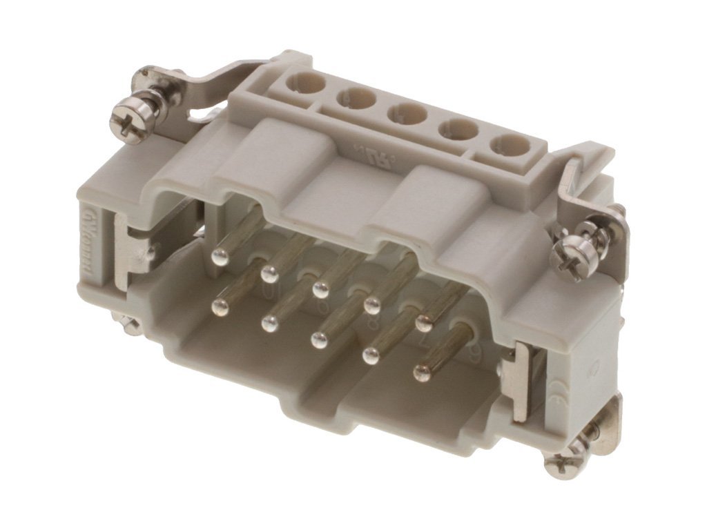GWconnect Screw Terminal Insert, Male, 10-Pole, 16A, with Wire Protection, Silver (Ag) Plated Contacts, Size 10B «57×27»