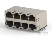 RJ45 Connector, Multiple Ports, 2 x 4, Standard Connector Contact Density, Jack, Shielded, Cat 5, Standard – Latch Down, 8 Position, AMP-METRIMATE