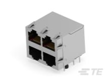 RJ45 Connector, Multiple Ports, 2 x 2, Standard Connector Contact Density, Jack, Shielded, Cat 5, Standard – Latch Down, 8 Position, Standard Profile