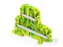Modular Terminal Blocks, Ground, PI-Spring Terminal Block, Green & Yellow, Product Spacing .236 in [6 mm], 4 Position, Push-in, DIN Rail