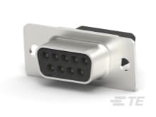 PCB D-Sub Connectors, Receptacle, Board-to-Board, 9 Position, 2.74 mm [.108 in] Centerline, 2 Row, 1 Connector Shell Size, Square, AMPLIMITE HD-20