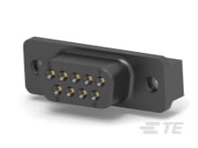 PCB D-Sub Connectors, Receptacle, Board-to-Board, 9 Position, 2.74 mm [.108 in] Centerline, 2 Row, 1 Connector Shell Size, Round, Standard Profile