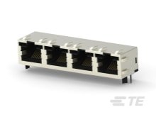 RJ45 Connector, Multiple Ports, 1 x 4, Standard Connector Contact Density, Jack, Shielded, Cat 5, Inverted – Latch Up, 8 Position, Standard Profile