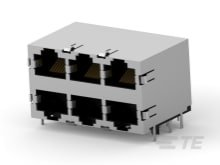 RJ45 Connector, Multiple Ports, 2 x 3, Standard Connector Contact Density, Jack, Shielded, Cat 5, Standard – Latch Down, 8 Position, AMP-METRIMATE